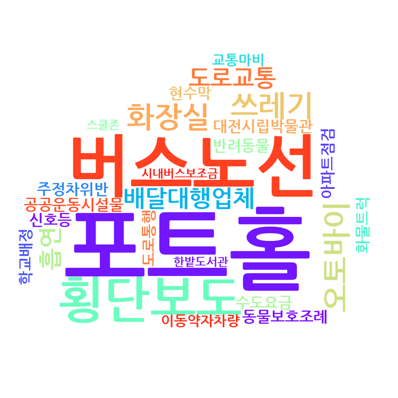 대전시의회가 올해 1분기(1~3월) 총 29건의 민원을 분석한 결과, 주정차 단속, 시내버스 노선, 신호등 시간 조정, 횡단보도 설치, 해빙기 도로 파임(포트홀) 보수 등 도로‧교통 이용 불편을 호소하는 민원이 약 41%에 달하는 것으로 집계됐다.
