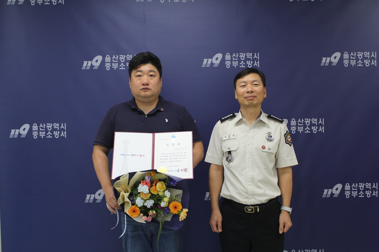 [울산 세계타임즈=이호근 기자] 울산 중부소방서는 28일 오전 10시 서장실에서 심폐소생술로 생명을 살린 구급활동 유공자에게 하트세이버 인증서와 배지를 수여했다고 밝혔다.