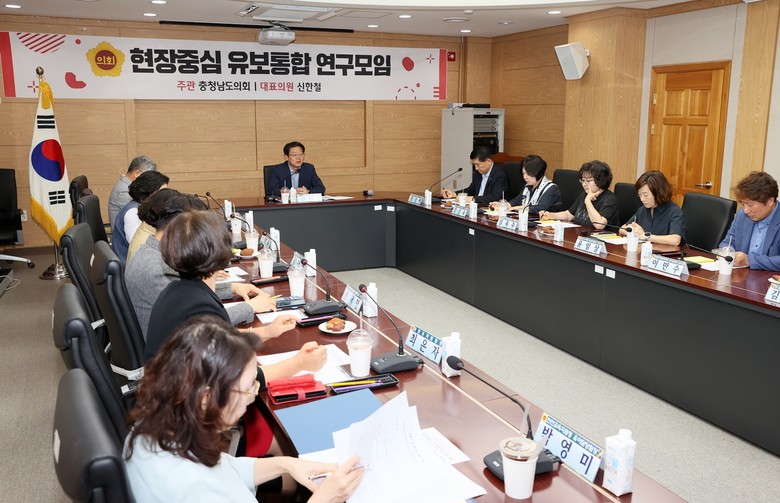 [충남 세계타임즈=이현진 기자] 충남도의회 ‘현장중심 유보통합 연구모임(대표 신한철 의원)’은 지난 5일 천안교육지원청 상황실에서 제2차 회의 및 연구용역 착수보고회를 열고, 본격적인 유보통합 정책 연구에 착수했다.