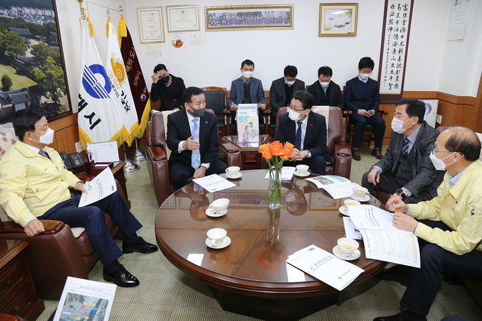 [부산=세계타임즈 장경환 기자] 부산광역시의회 신상해 의장은 28일(목) 경상남도의장, 김해시장 등을 만나 ‘초정 ~ 화명간 광역도로 건설사업(총연장 3.55km, 부산시 1.5km완료, 김해시 2.05km)’ 잔여구간인 ‘초정 I.C. ~ 안막 I.C.(김해시 2.05km)’가 올해 착공될 수 있도록 협의했다.