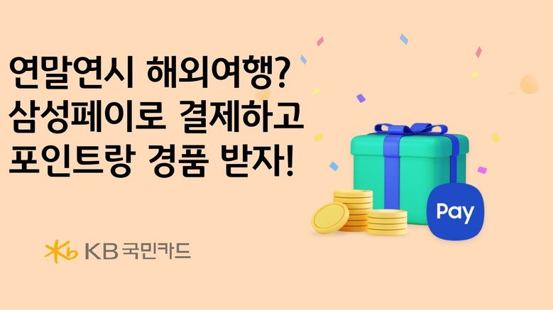내년 2월 12일까지 KB국민카드로 삼성페이 해외결제하면 포인트 적립과 경품 혜택 제공