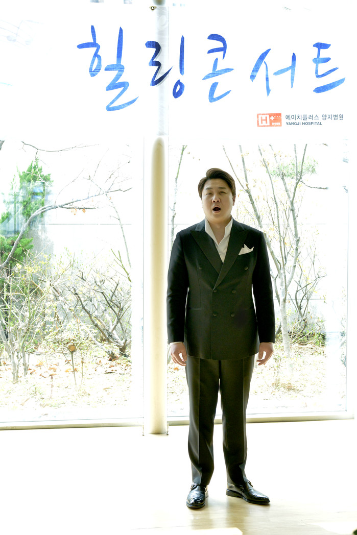 | ▲ 37년전 본인이 태어난 H+양지병원에서 공연을 펼친 바리톤 이규봉 교수(추계예술대학교 겸임교수). |