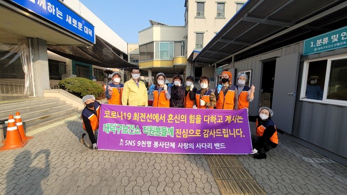[대전=세계타임즈 이채봉 기자] 9천명 SNS 대전시 봉사단체 사랑의 사다리 밴드(리더 이정제)는 지난16일 오후3시, 코로나19 최전선에서 애쓰고 있는 대덕구보건소 100명의 직원들에게 바비큐 통닭 50마리 봉사로 우리 사회의 따뜻한 사랑을 전달 하였다.