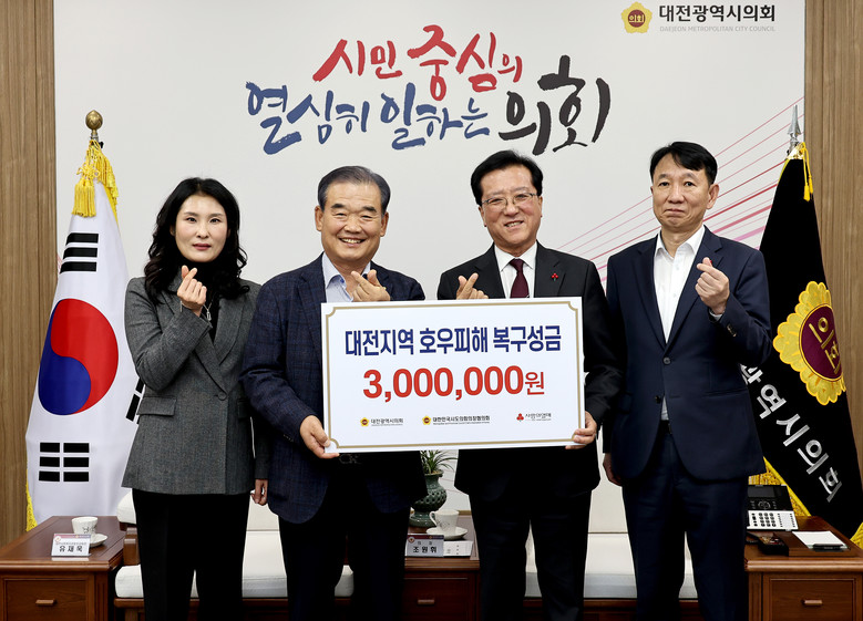 대전시의회는 올해 발생한 집중호우로 피해를 입은 주민들의 생활안정과 신속한 복구 지원을 위해 대한민국시도의장협의회로부터 재난구호금을 신청해 300만원을 지원받았다.