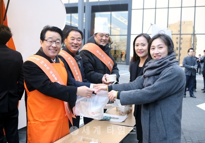 아울러 영하의 쌀쌀한 날씨에도 출근길의 임직원들은 따뜻한 컵밥을 받으며 불꽃셰프로 변신한 사장과 팀장들 모습에 즐거워했다.