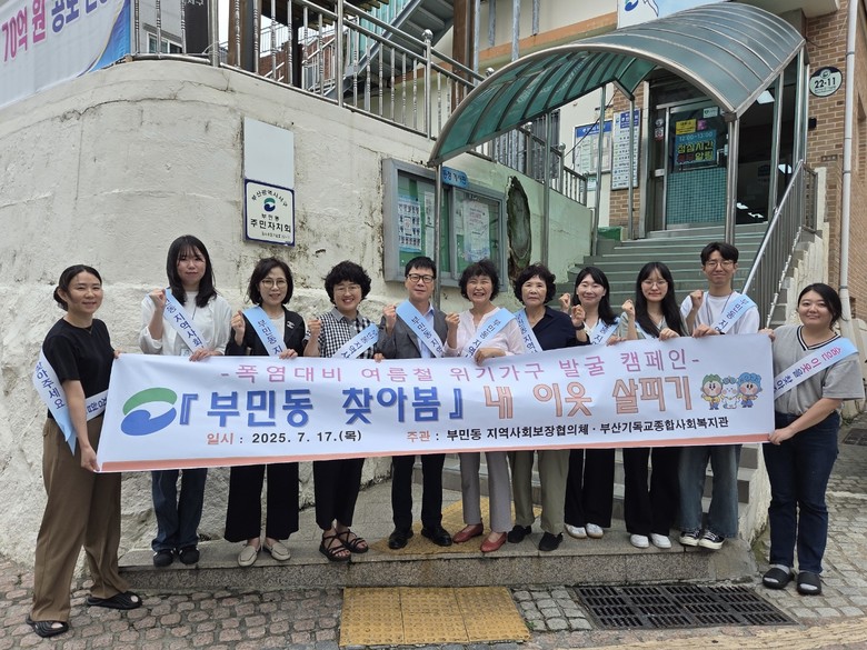 [서구 세계타임즈=이용우 기자] 부산 서구 부민동 지역사회보장협의체(위원장 구자홍)와 기독교종합사회복지관(관장 김정자)은 지난 17일, 지속되는 폭염 위험에 노출된 어려운 이웃들을 적극 발굴하여 도움을 드리기 위해 ‘부민동 찾아봄 내 이웃 살피기’ 캠페인을 실시했다.