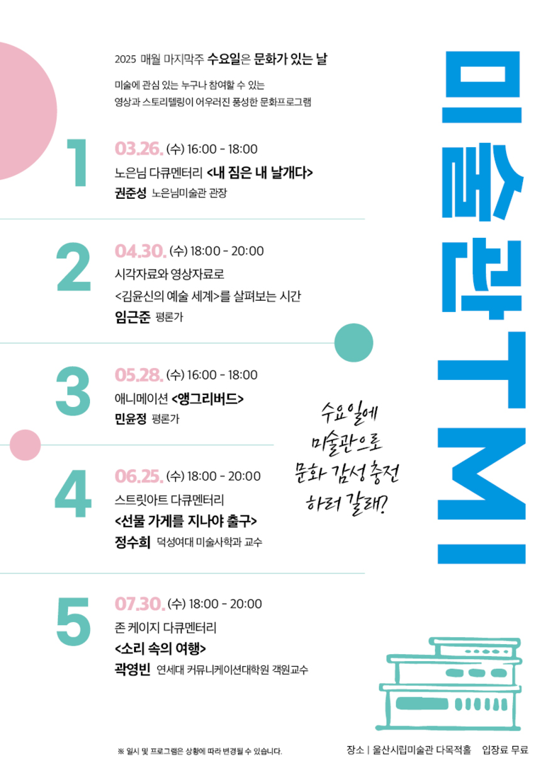 한국 1세대 여성 조각가 김윤신의 작업 세계 살펴보는 시간 마련 [울산 세계타임즈=이호근 기자] 울산시립미술관은 4월 30일 오후 6시 미술관 1층 다목적홀에서 문화가 있는 날 ‘미술관 티엠아이(TMI)’ 행사를 진행한다고 밝혔다.