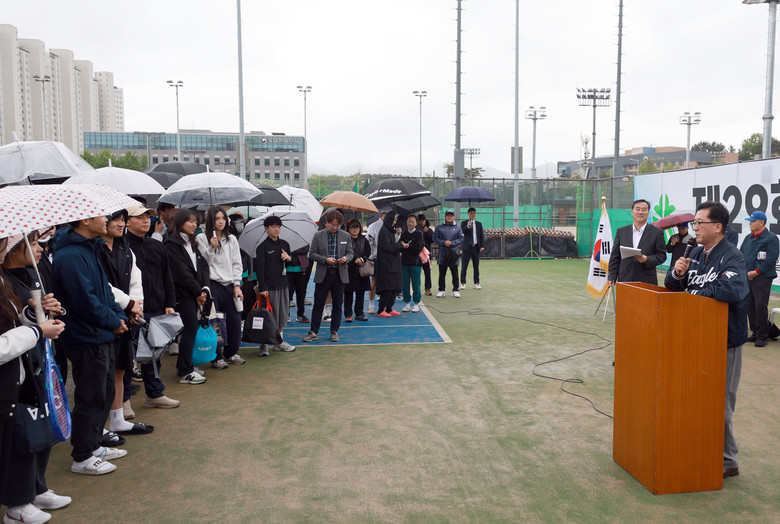 [대전 세계타임즈=이채봉 기자] 대전시의회 조원휘 의장은 10일 충남대학교에서 개최된 제29회 대전광역시장배 테니스대회에 참석해 사고 없는 안전한 대회 진행을 기원하며 지속적인 생활체육 인프라 확충을 약속했다.