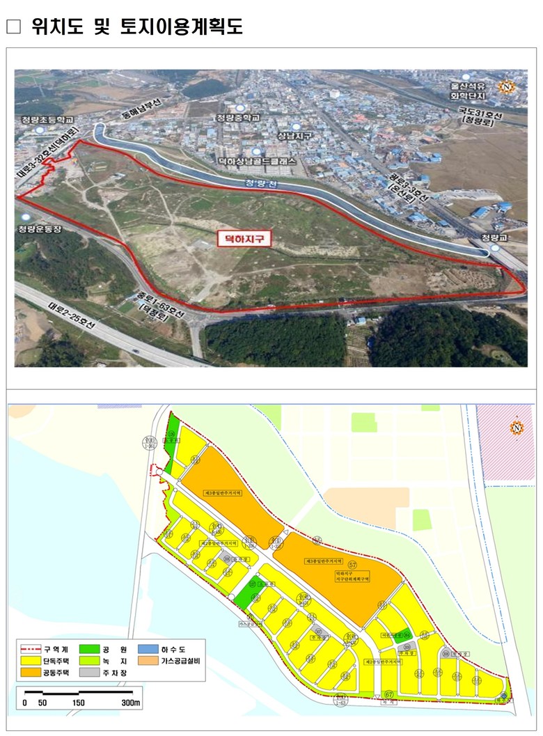 덕하지구 토지구획정리사업은 일반택지 237필지 640가구, 공공택지 2필지 2,000가구 규모로 조성됐다.