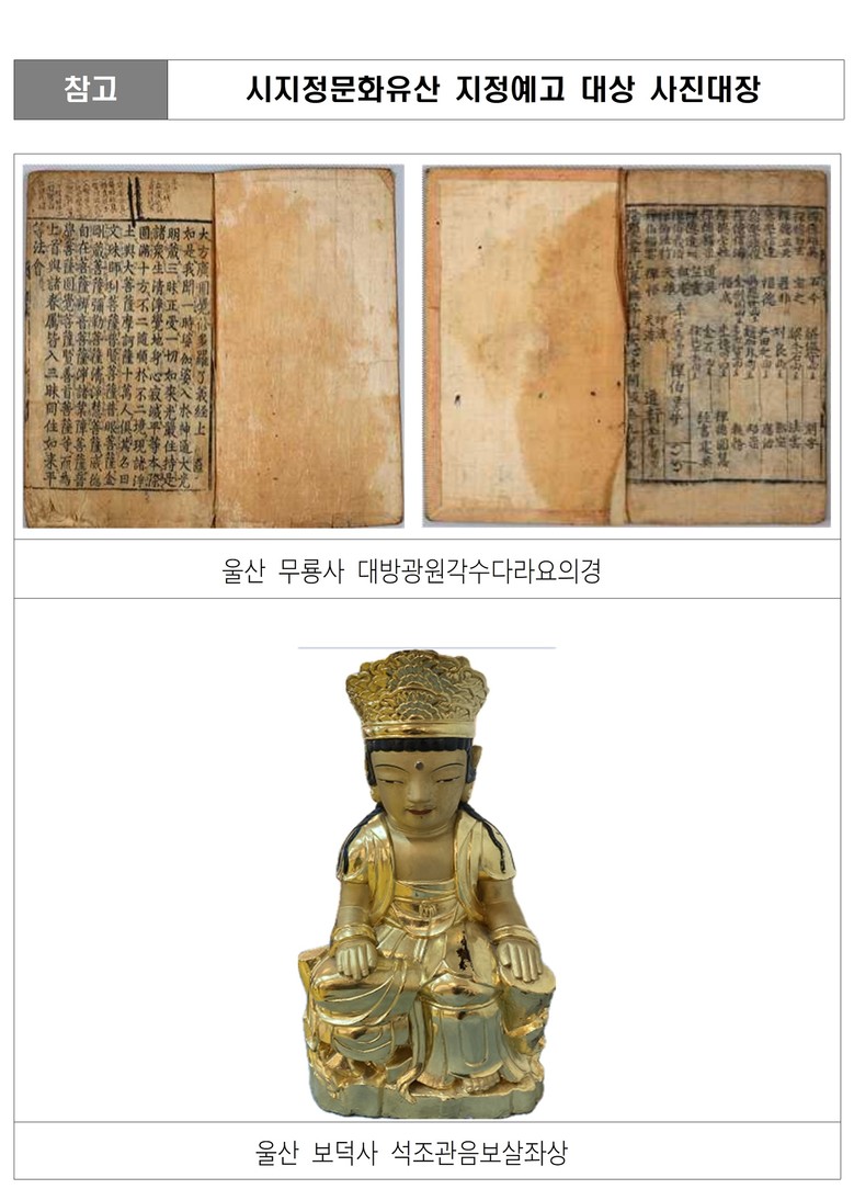 한편 울산시는 지난 2월 이들 문화유산을 지정 예고해 각계 의견 수렴 및 울산시 문화유산위원회 심의를 거쳐 최종 지정 고시하게 됐다.