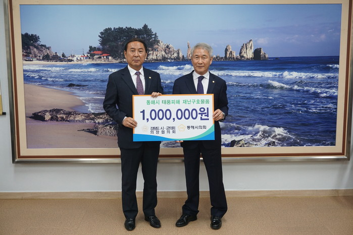 [동해시=세계타임즈 김민석 기자] 강원도시·군의회의장협의회(회장 이원규)는 18일 동해시의회를 방문, 연탄 1,350장(100만원 상당)을 태풍피해 이재민에게 전달해 달라며 기탁했다.