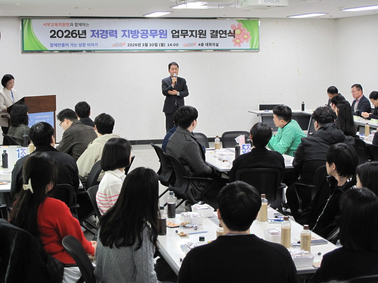 [인천 세계타임즈=심하린 기자] 인천서부교육지원청(교육장 김석봉)은 저경력 지방공무원의 학교 현장 적응을 돕고 실무 역량을 강화하기 위해 지난 30일 ‘신규 지방공무원 업무지원 결연식’을 개최했다.