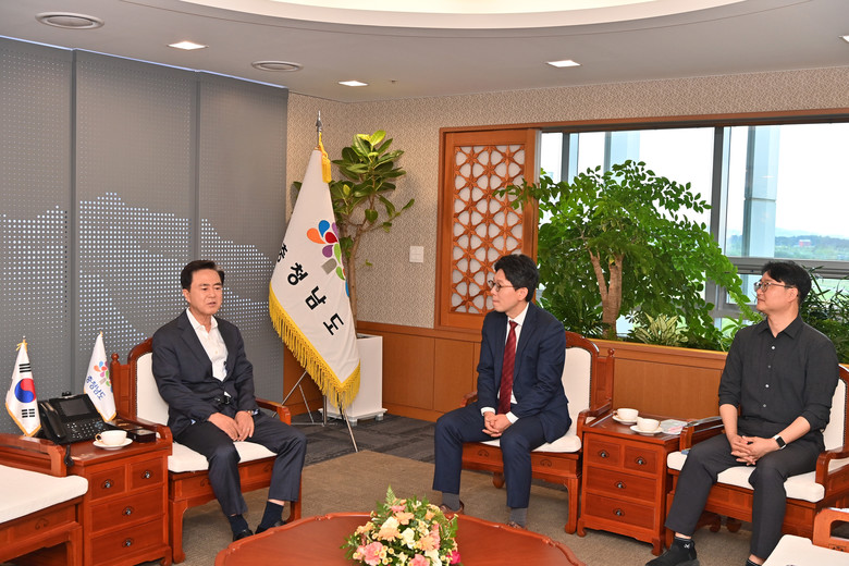 도는 21일 도청 접견실에서 김병민 서울시 정무부시장이 김태흠 지사에게 수해 복구 성금 2억원을 전달했다고 밝혔다.