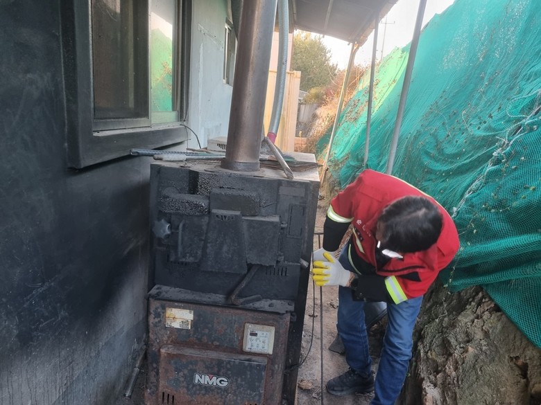| ▲ 시 관계자가 설 연휴 기간 산불 예방을 위해 산림 인접 가정의 화목보일러를 점검하고 있다 |