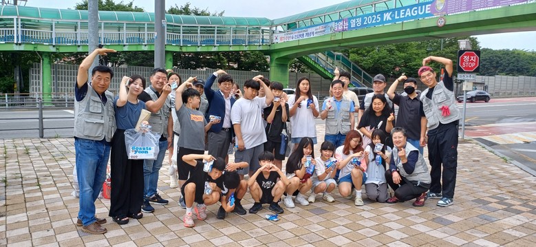 이날 조치원읍주민자치회와 대동초 학생들은 육교 근처 폐기물을 청소하고, 학생들이 직접 기획한 보행안전과 생명존중 캠페인 문구를 육교 계단에 부착했다.