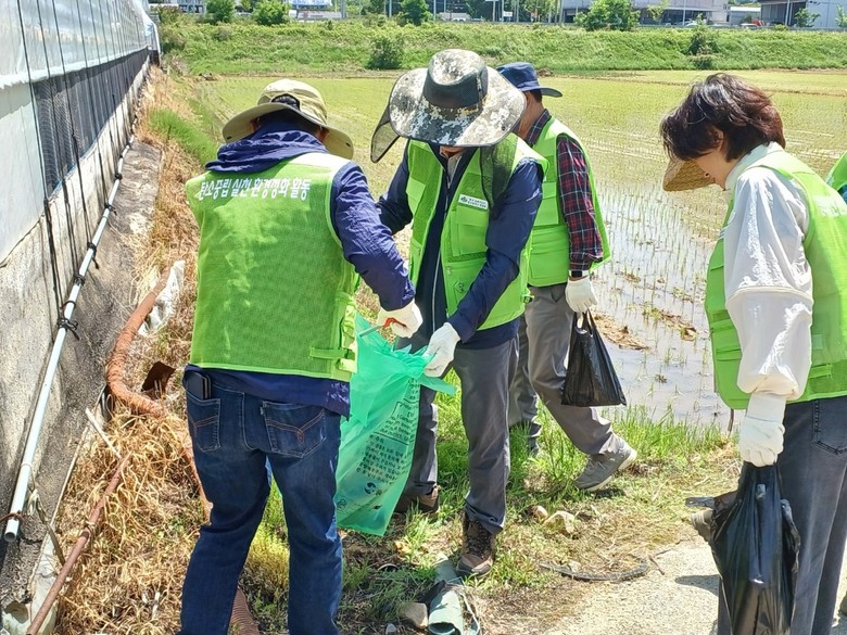 참가자들은 농경지 주변 및 마을 일대에 방치된 폐농약병, 폐비닐을 비롯한 영농폐기물과 생활쓰레기 등을 수거하며 농촌 환경 개선에 힘을 보탠다.