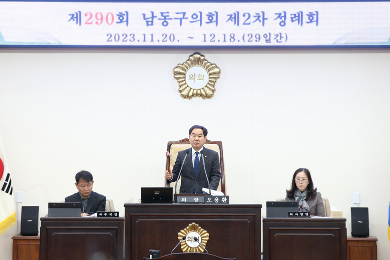 [남동구 세계타임즈=심하린 기자] 남동구의회(의장 오용환)는 20일 본회의장에서 제1차 본회의를 시작으로 29일간의 제290회 제2차 정례회 일정에 돌입했다