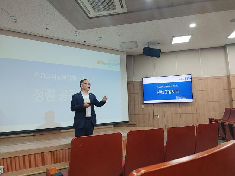 지난 22일 경남교육청 교육복지과 주최로 창원대학교 사회과학대학에서 열린 ‘학교급식 납품업체 소통의 날 청렴공감 토크’행사에는 도내 급식 식재료 납품업체 39개 업체 대표와 영양교사 및 영양사, 교육지원청 별 급식 담당자들이 참석했다. 이날 행사에서는 2023년 납품업체 합동점검 결과를 공유하고, 교육청의 점검과 관련한 업체들의 의문점과 애로사항 등을 나누는 시간이 이어졌다.