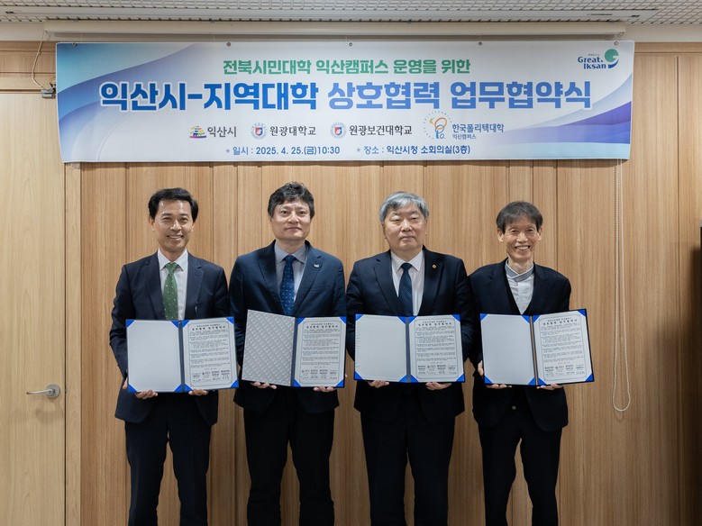 익산시는 25일 시청 소회의실에서 지역 내 3개 대학교와 '전북시민대학 익산캠퍼스' 운영을 위한 업무협약을 체결했다.
