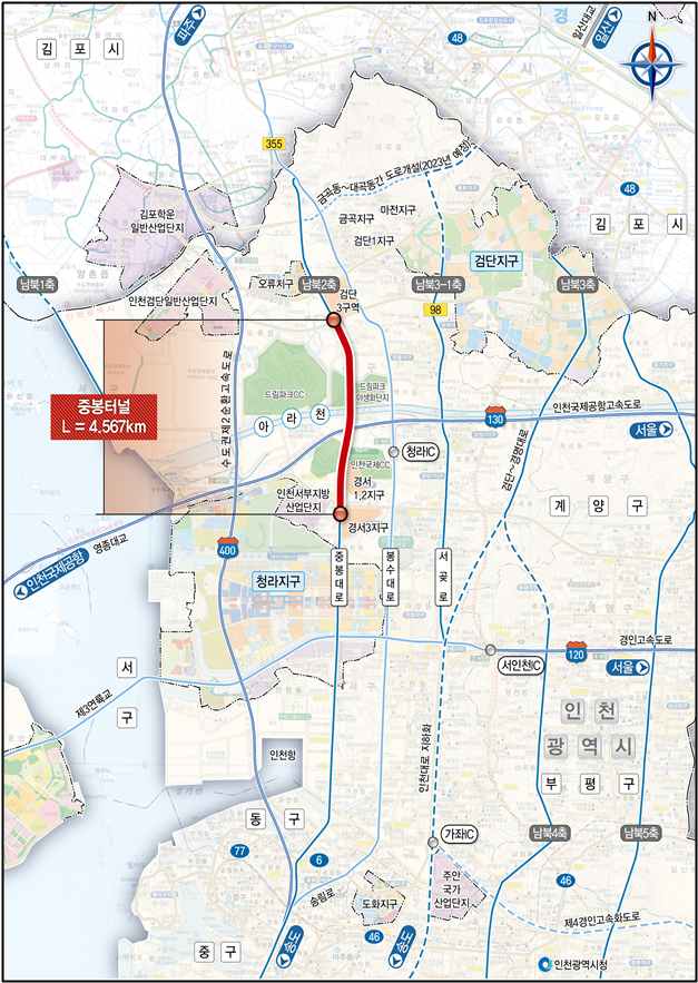 - 2027년말 착공, 2032년말 개통, 북구권역 혼잡완화 및 시민 교통복지 향상 - [인천 세계타임즈=심하린 기자] 인천광역시(유정복 시장)는 중봉터널 건설을 민간투자사업 방식으로 추진하기로 결정하고 오는 10월 27일 ‘중봉터널 민간투자사업’ 제3자 제안공고를 실시한다고 밝혔다.