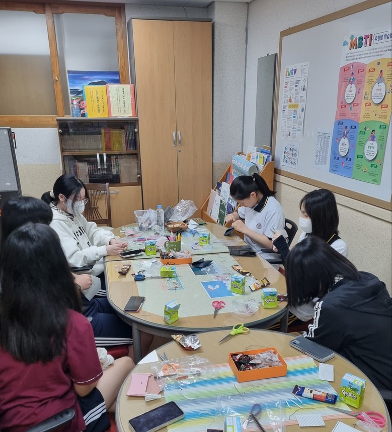 [시흥시 세계타임즈=송민수 기자] 7월 8일, 학생 자율동아리 ‘드림잡고’ 학생들은 공예 진로 체험에 참여했다.