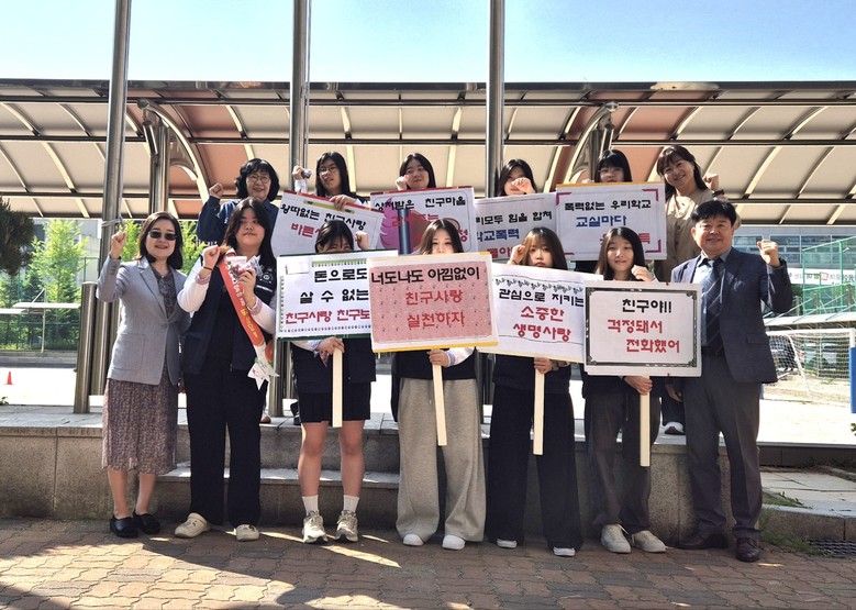 또래 상담자 학생들이 피켓을 높이 들고‘상처받은 친구 마음, 감싸주는 우리 우정’, ‘폭력 없는 우리 학교, 교실마다 웃음 가득’이라고 목청껏 외치는 메시지는 학생들에게 서로 공감하고 존중하는 자세를 되새겨보는 계기가 되었다.