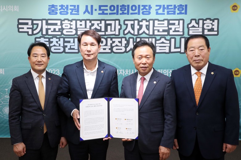 이와 더불어 충청북도의회 황영호 의장은 국가의 새로운 신성장 동력 역할을 할「중부내륙연계발전지역 지원에 관한 특별법」제정 관련 “진정한 균형발전 실현을 위한 특별법이 연내 통과될 수 있도록 적극적인 지지와 충청권 메가시티 형성을 위한 대전~세종~충북 광역철도 청주 도심 통과 노선 확정을 위해 충청권 4개 시도의회 모두가 힘을 모아 달라”고 도민의 뜻을 전했다.