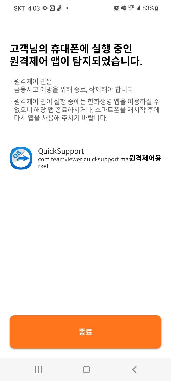 이 방지 시스템은 대다수의 고객이 사용하고 있는 안드로이드 운영체계 휴대폰에 적용되며, 원격제어APP이 감지되었을 경우에는 한화생명 APP이 구동되지 않도록 안전장치를 마련했다.