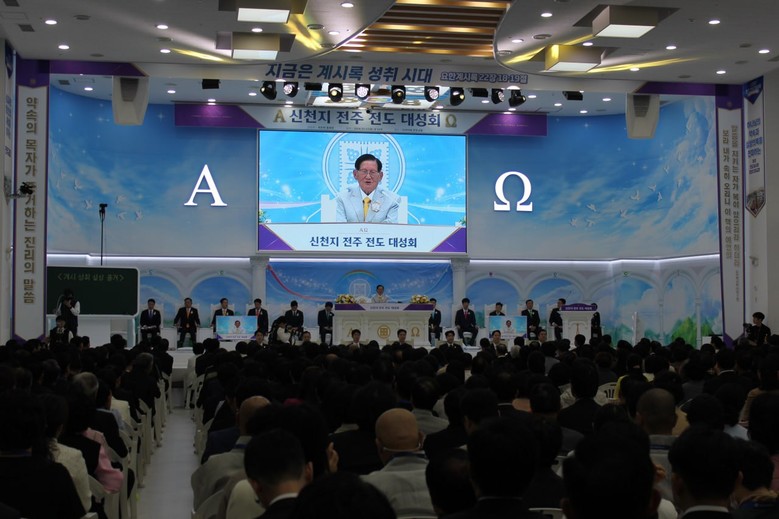 신천지예수교 증거장막성전(총회장 이만희·이하 신천지예수교회)은 이날 신천지 전주교회에서 ‘신천지 전주 전도 대성회’를 개최한다. 이날도 이만희 총회장이 강연자로 나선다. 이 총회장은 올해 벌써 40여 회 전국을 돌며 요한계시록의 예언이 이루어진 실상을 확인할 것을 권하고 있다.