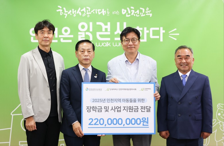 [인천 세계타임즈=심하린 기자] 인천광역시교육청(교육감 도성훈)은 19일 굿네이버스 인천사업본부(본부장 홍상진), 인천지역후원회(후원회장 유정학), 초등교육전문위원(대표 김창용)과 함께 경제적 취약계층 학생과 방학 중 위기가정 아동 지원을 위한 ‘2025년 희망 장학금 및 사업 지원금 기탁식’을 개최했다.