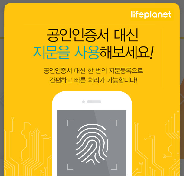 파이도(FIDO) 인증은 스마트폰 단말기에서 생체정보가 인증, 처리되는 방식으로, 라이프플래닛은 금융결제원이 제공한 솔루션을 활용해 공인인증서 자체를 지문으로 대체하는 방식을 적용했다.