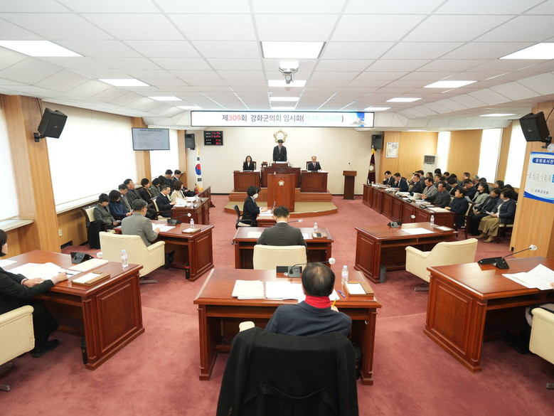 [강화군 세계타임즈=심하린 기자] 강화군의회(의장 한승희)는 2일 제309회 임시회를 개회하고 2월 4일까지 3일간의 의사일정에 돌입했다.