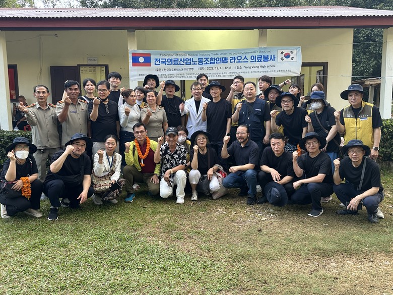 [세계타임즈 백진욱 기자] 지난 2022년 12월 4일(일)부터 12월 8일(목)까지 전국의료산업노동조합연맹(이하 의료노련, 위원장 신승일)이 한국노동복지센터의 <아시아연대 프로그램>과 연계하여, 노조의 사회공헌연대회 활동으로 라오스에서 의료 나눔을 하고 돌아왔다.