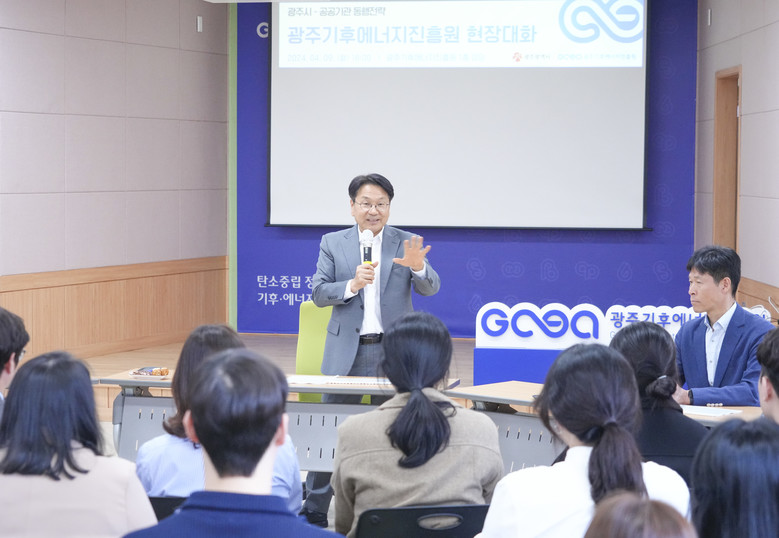 광주광역시(시장 강기정)와 광주기후에너지진흥원(이하 진흥원)은 9일 오후 진흥원 다목적강당에서 ‘공공기관 현장대화’를 열어, ‘공공이 선도하고 시민이 함께하는 탄소중립도시 광주 실현’을 주제로 이야기를 나눴다.