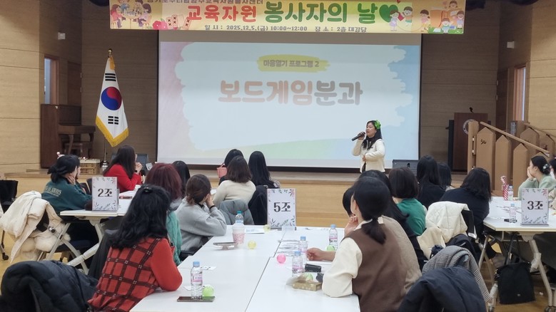 이날 행사에는 분과별 활동 영상 상영, 우수 사례 발표, 전래놀이·보드게임·창의독서 등 마음열기 체험 프로그램이 진행되었으며, 봉사자들이 서로의 성장을 응원하는 ‘소원메시지 나눔 활동’도 마련되어 참여자들의 높은 호응을 얻었다.