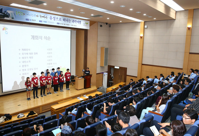 <사진 : 23일, 24일 유성구 꿈나무과학멘토 일환으로 KAIST에서 열린 유성구와 KAIST가 함께하는 ‘유성으로 떠나는 과학여행’이 전국에서 모인 200여명의 초등학생과 학부모가 참여한 가운데 성황리에 마무리됐다. 사진은 참가학생들이 등록신청을 하고 있는 모습>