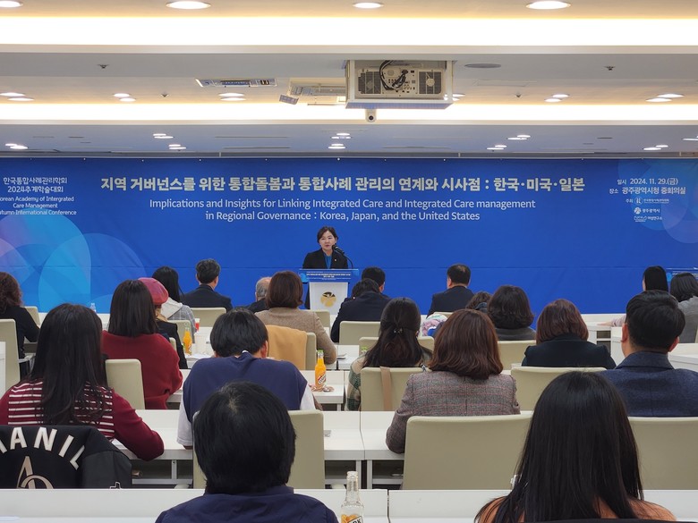 광주시의회 박미정(더불어민주당,동구2) 의원은 29일 광주시청 중회의실에서 열린 ‘한국통합사례관리리학회 2024추계국제학술대회’ 종합토론자로 참석해 ‘광주다움 통합돌봄’ 을 소개하며 지방의회 역할의 중요성 및 통합돌봄과 통합사례관리 연계에 대해 설명했다.