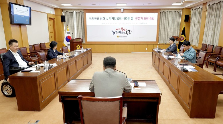 [대전 세계타임즈=이채봉 기자] 대전시의회 ‘더좋은조례연구회’(회장 김영삼 의원)는 시민 중심의 입법 역량 강화를 위해 전문가 초청 특강을 개최했다.