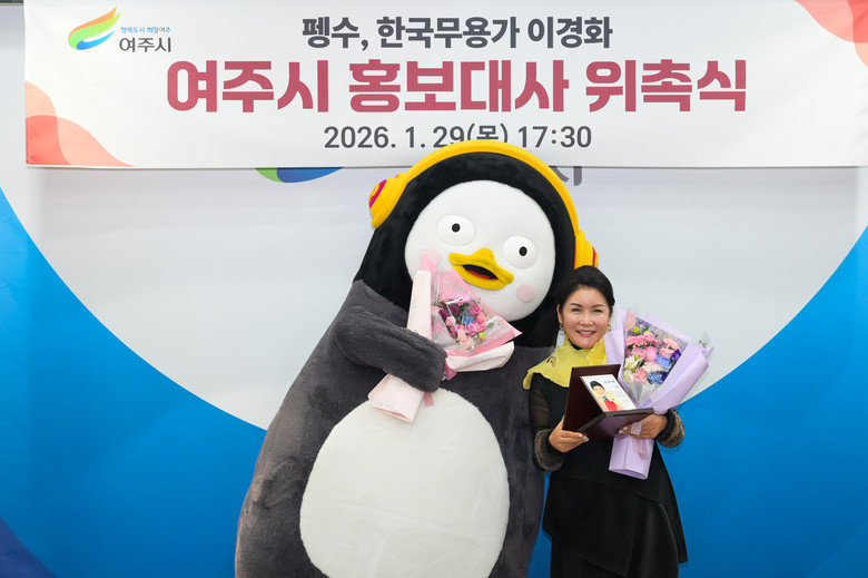 이충우 여주시장은 “어린이를 넘어 세대가 모두 공감하는 캐릭터로 성장한 펭수와 전통문화예술을 세계화로 이끈 이경화 명무님을 홍보대사로 모실 수 있어서 매우 뜻깊게 생각한다”면서 “문화 관광 도시로 새로운 도약에 나선 여주시의 홍보대사로서 큰 역할들을 기대한다”고 말했다.