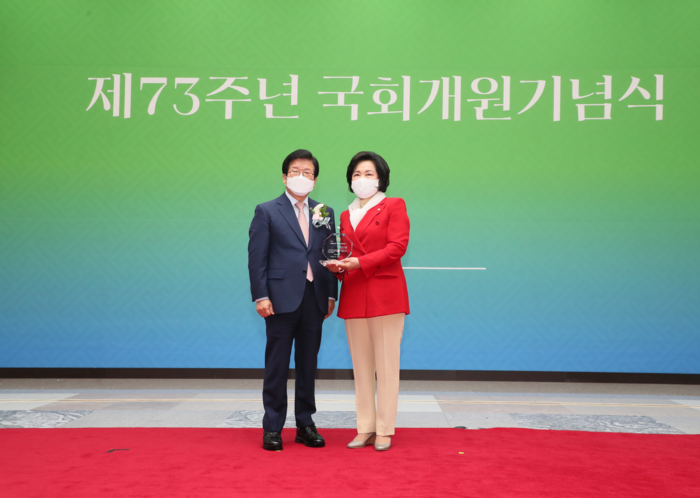 ‘대한민국 국회 의정대상’은 대한민국 국회가 실적이 우수한 국회의원과 연구단체를 선정하기 위해 지난 3월 신설한 상이다. 국회는 개원 1주년을 맞아 ‘국회 개원기념식’을 개최해 시상식을 열고 우수 법률안 발의 국회의원 30인과 우수 연구단체 5개를 선정했다.