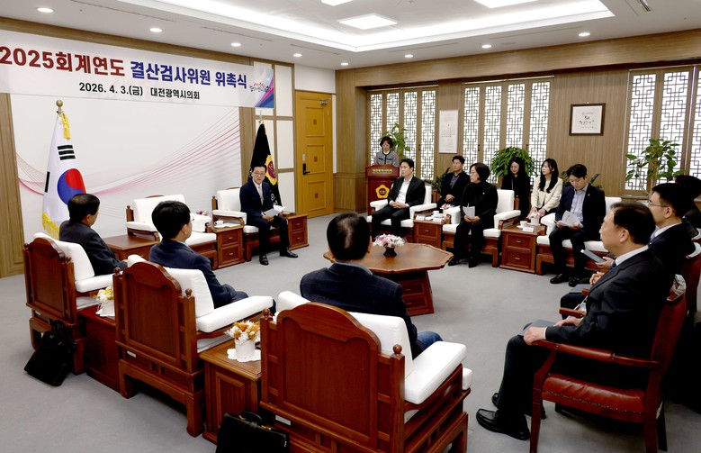 [대전 세계타임즈=이채봉 기자] 대전시의회(의장 조원휘)는 3일 의장 접견실에서 2025회계연도 결산검사위원 위촉식을 가졌다.