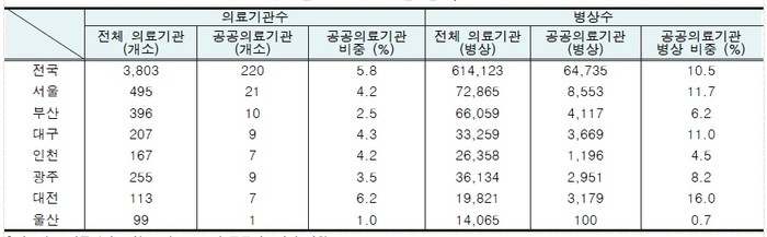 ► 지역별 공공의료기관 현황(2016)