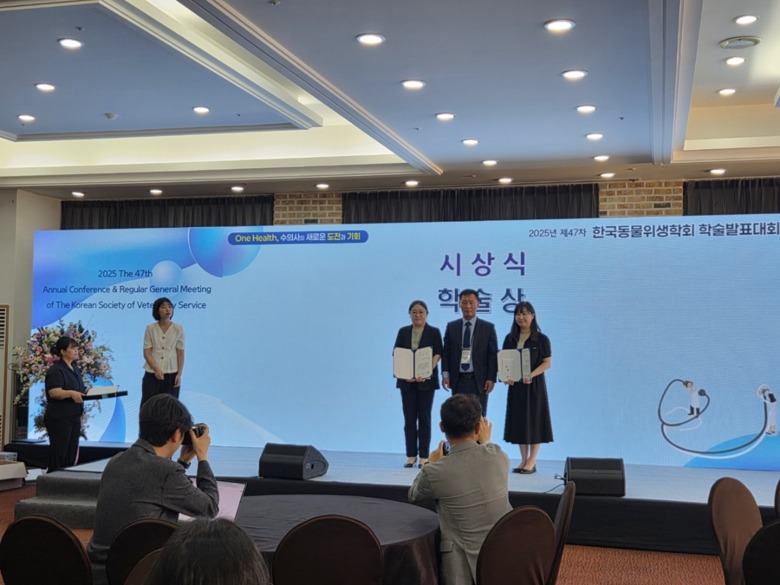 또한 ‘국내 모돈과 멧돼지에서의 마이코박테리움 혈청학적 검출’로 우수발표상과 ‘도축장 출하 염소의 소바이러스성 설사병 바이러스 감염실태 조사’에 관한 논문으로 학술상을 수상하는 쾌거를 이뤘다.