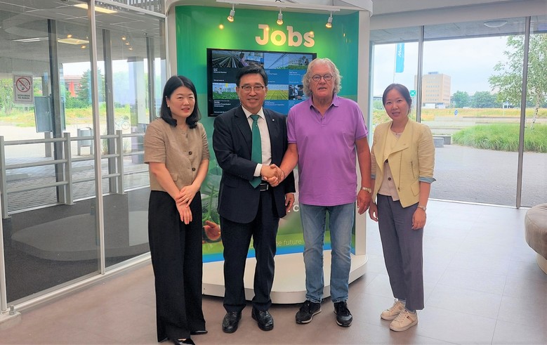 잇따라, 김 사장은 산‧학‧연‧관 연계 종합 식품클러스터인 푸드밸리(Food Valley) 소재 세계 최초 농과대학과 연구기관을 통합‧운영하는 와게닝헨 대학연구센터(Wageningen University & Research Center, WUR)를 방문했다. 그리고 센터에 파견 중인 정민웅 농촌진흥청 상주연구원과 네덜란드 농수산식품의 핵심 경쟁력과 미래 방향성에 대해 심도있게 논의했다.