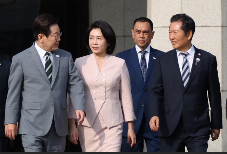 [세계타임즈 = 이채봉 기자] 말레이시아 아세안 정상회의 참석차 출국하는 이재명 대통령이 26일 성남 서울공항에서 더불어민주당 정청래 대표와 대화하며 공군 1호기로 향하고 있다. 2025.10.26