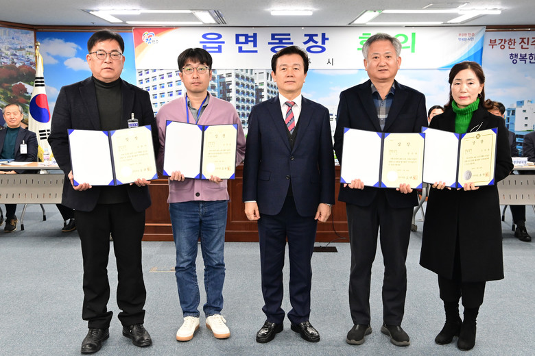 조규일 진주시장은 표창을 수상한 읍면동에 축하 인사를 전하며 “시정 발전과 시민의 복지증진을 위한 각종 시책 추진을 위해 열심히 뛰어준 전 읍면동 직원들의 노고에 감사 드린다”며 “새해에도 변화하는 행정 환경에 적극 대응하고, 시민과 소통하며 ‘시민이 행복한 진주’를 만들기 위해 정진해 줄 것”을 당부했다.