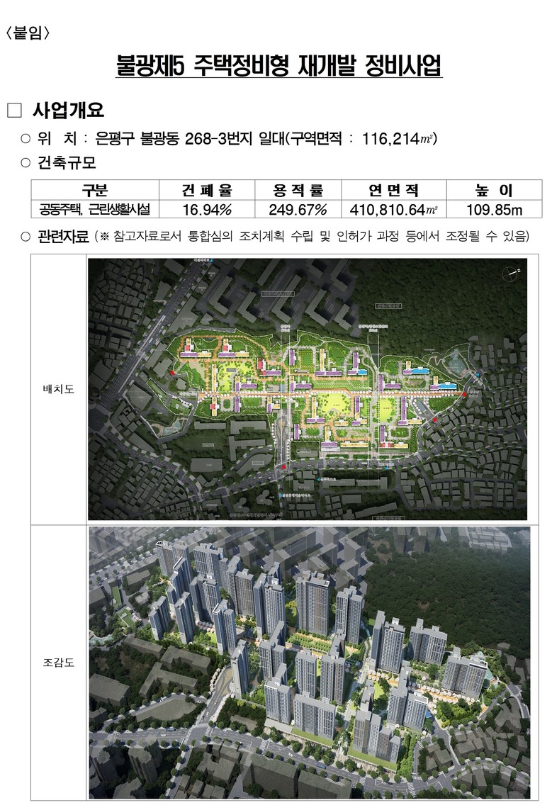- 북한산 조망, 불광근린공원과 연계 35층 규모 2,425세대 새로운 명품주거단지 재탄생