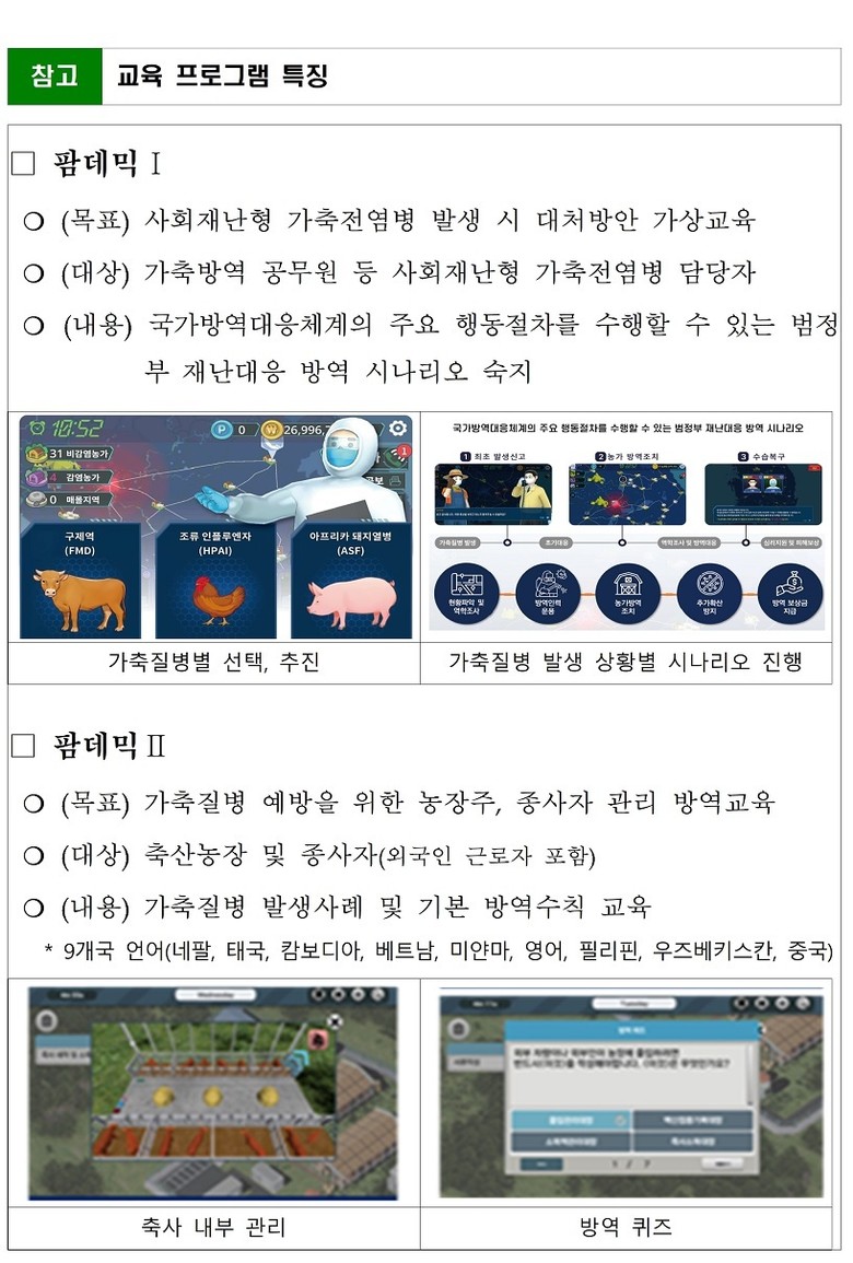 특히 현장 교육에서는 디지털 방역 교실을 운영하고, 교육 후 방역복과 소독약 등 방역물품을 지급해 효과를 극대화할 예정이다