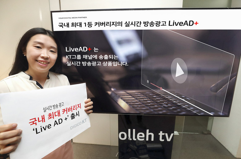‘Live AD+’는 KT그룹의 실시간 방송 광고 상품으로 100여 개 실시간 채널에서 방송되는 각 프로그램과 프로그램 사이에 약 2분간 영상 광고를 송출하는 상품이다. 주요 특징으로 ▲광고주가 희망하는 맞춤형 타기팅 광고 송출 ▲완전 시청한 건만 100% 과금 ▲다차원분석 통합분석 리포트 ▲실시간 모니터링 영상 제공 등이 있다.