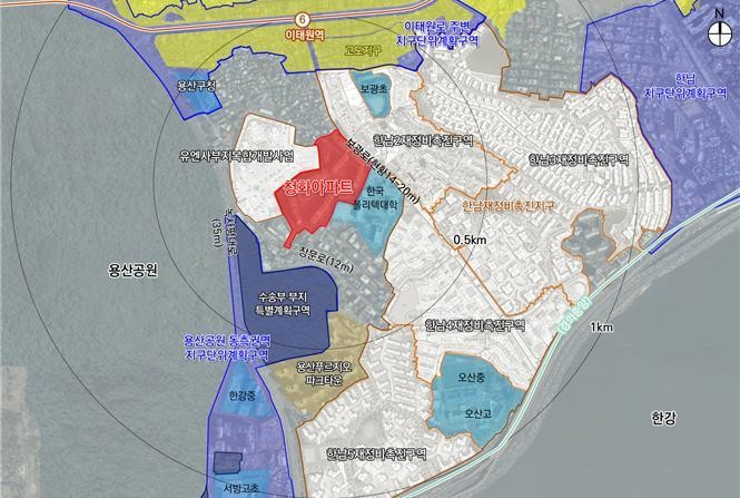 - 한강과 남산을 잇는 중심지로 한남동 개발과 연계한 주거환경 개선 기대